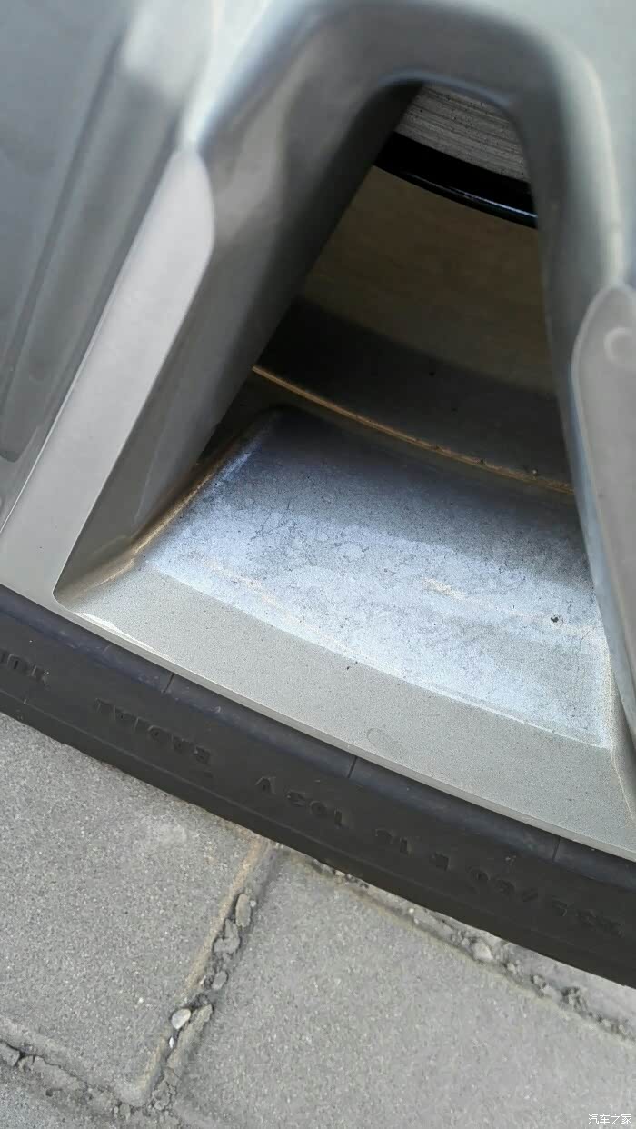 4.刹车片刹车后掉渣严重,ssss说是材料原因,需要经常擦轮毂洗轮胎,不然腐蚀。看下图轮毂照片,还是300公里时擦过的