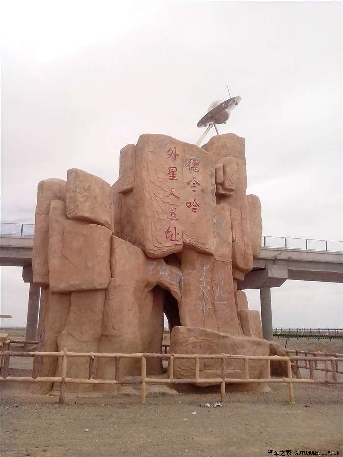 出了青海湖,道路两边慢慢就开始沙漠化了,中午时分我们赶到了德令哈,吃了午饭继续赶路。虽然路上没车,但是我依然小心翼翼开着车,车速保持在60-80公里之间。