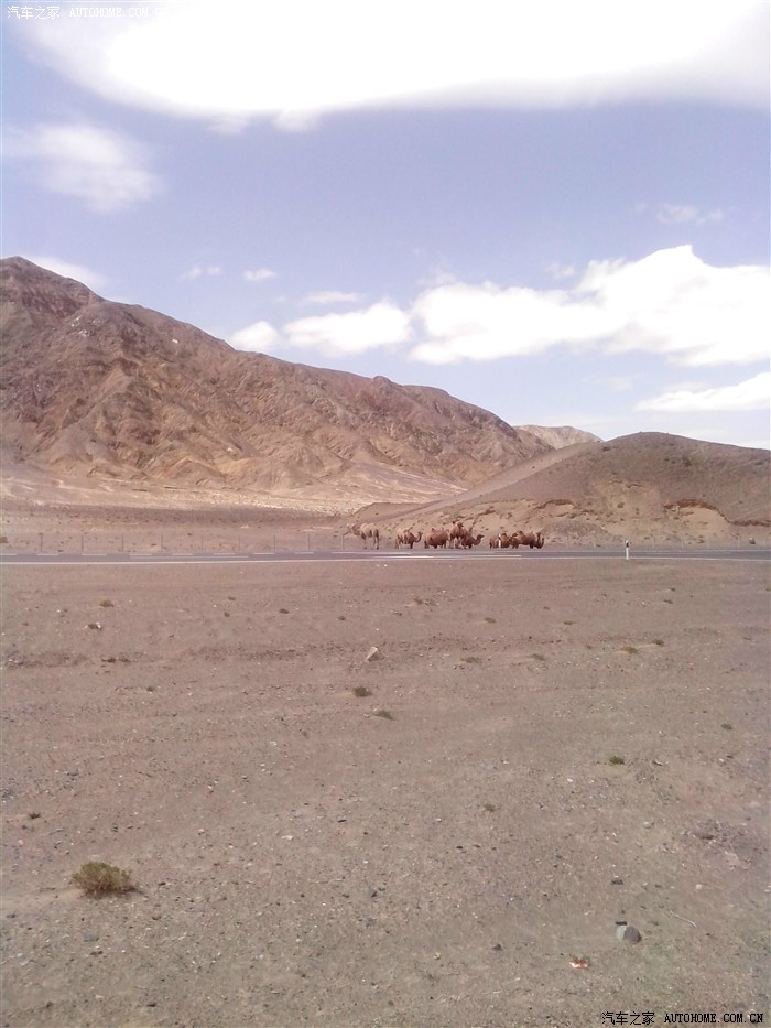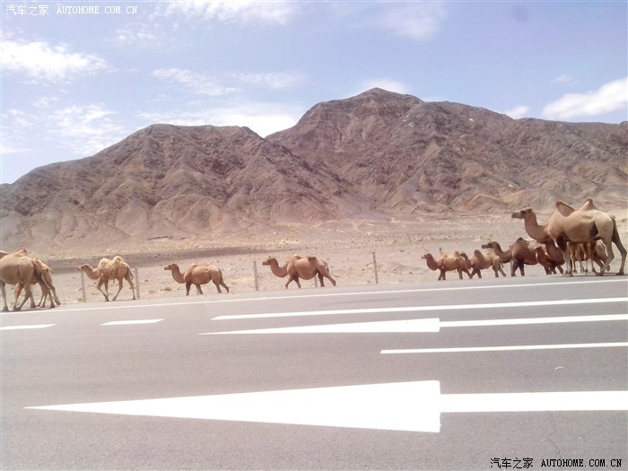 道路上遇到的骆驼群,它们就这样在路上慢悠悠的走着,也没人看管,到底这是不是野生的呢??
