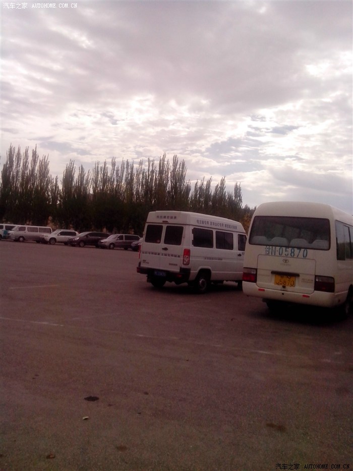 到达敦煌停车场,我把依维柯停在大车区,因为大车区没有车,小车停车区已经停满了,这时来了一辆奔驰商务,也和我并排停着,没想到保安把他请出了大车停车区,悲催的奔驰!