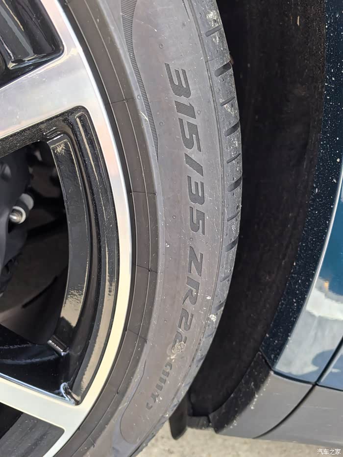 前轮285 40 22,后轮胎315 35 22。轮胎尺寸虽然大,但驾乘起来无论胎噪还是颠簸过滤,都很舒适。