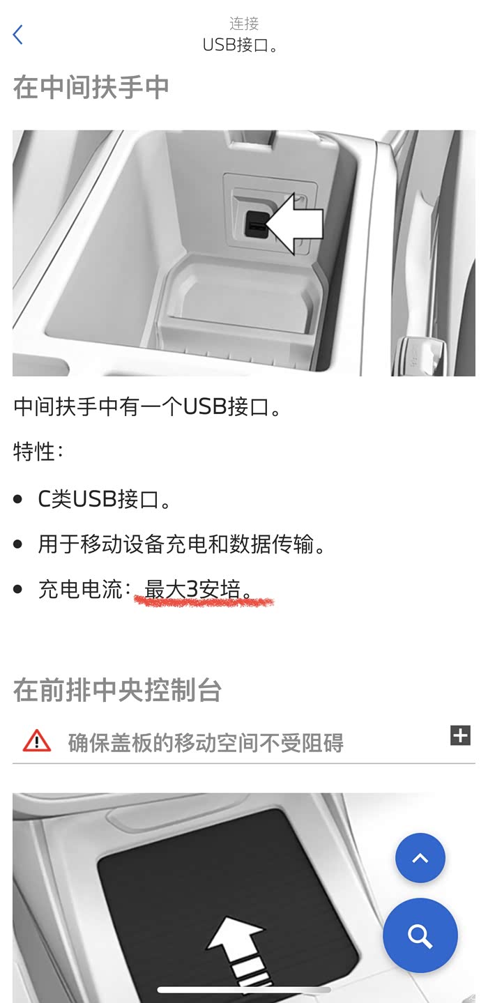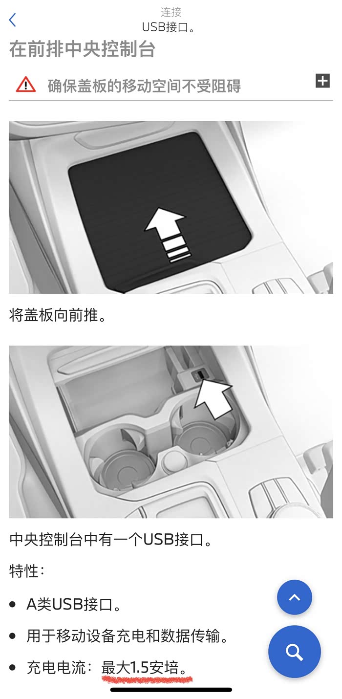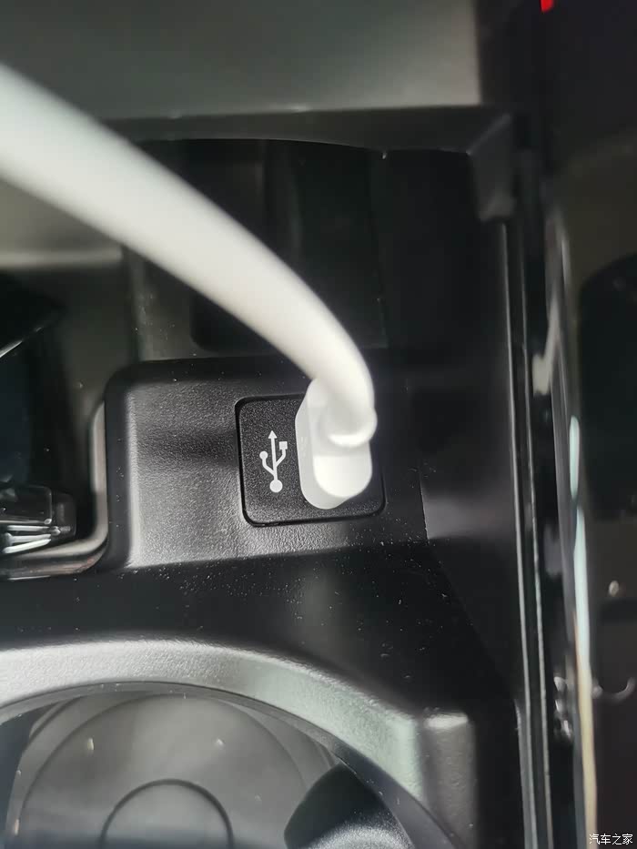 中控盖板下面这个USB口主要是用于插U盘或者有线连接手机的,额定电流没有扶手箱和后排空调出风口底下两个口的高。如果要充电快,就用扶手箱那个口吧。