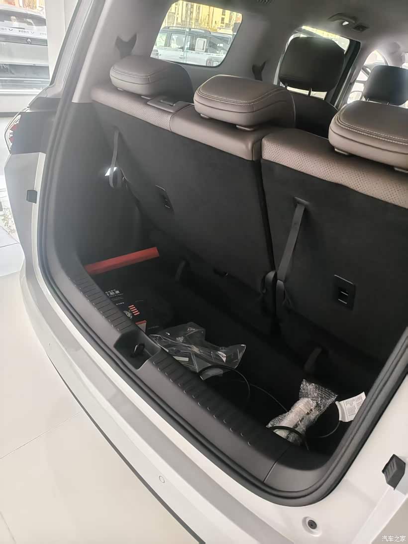 3. 空间足够大,储物够多!第三排坐得下身高 175cm的成年人,腿部有余量,7座状态下后备箱能装2个登机箱,放倒三排可容纳婴儿车+折叠桌椅。