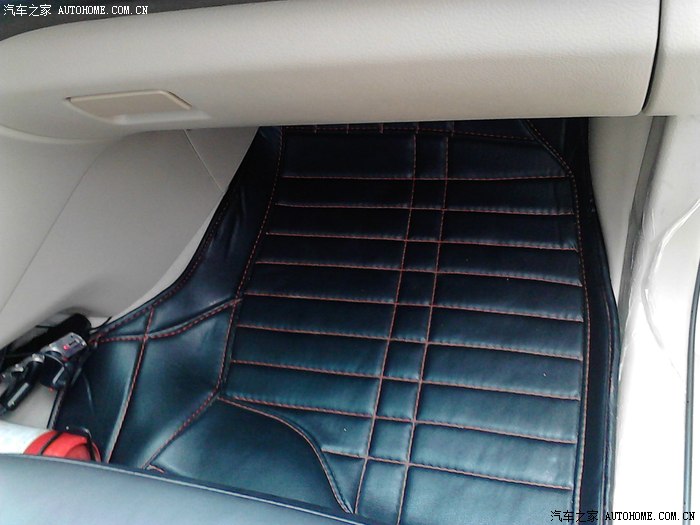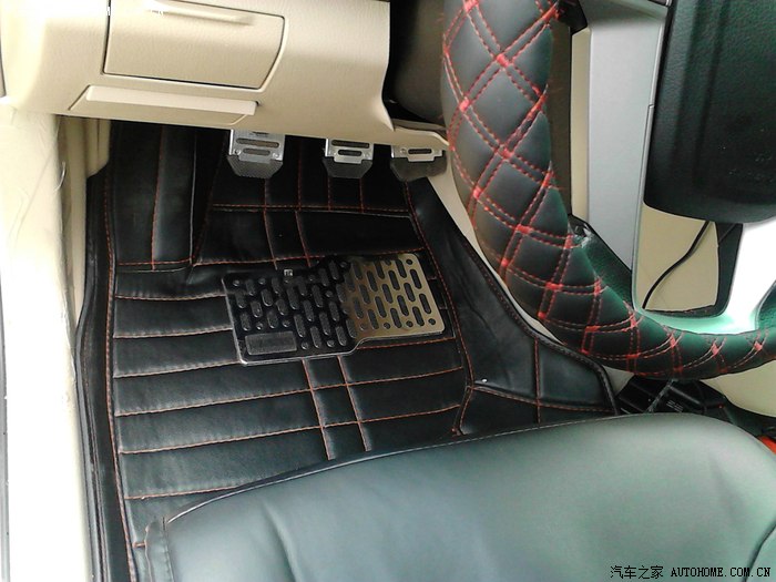 2,大包围脚垫,PC皮,颜色很配,尺寸很合适(黑皮红线)