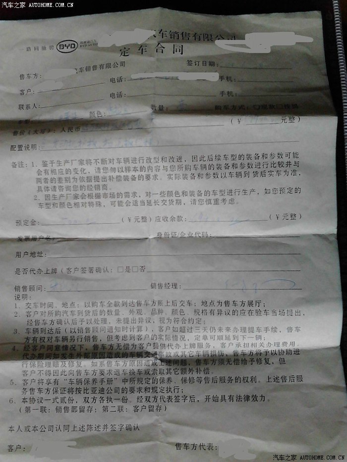 定完车,问了问贷款的事,回家合计了一下,7W块钱贷款,手续麻烦不说,三年要7000的利息,不划算,直接通知销售帅哥现金提车,具体提车时间再通知