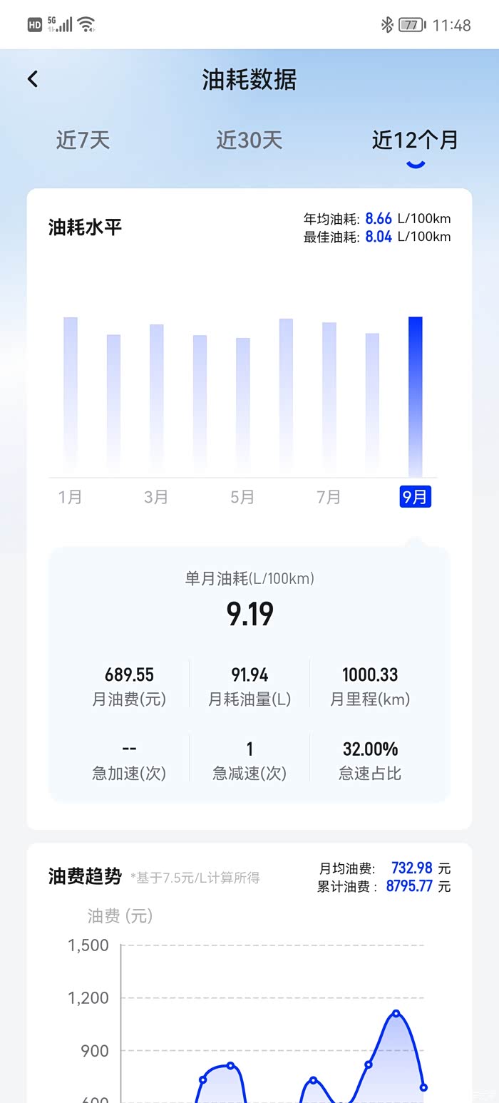 主要是市区通勤,高速大概跑了有5000公里吧,每月加两次油,大概700元左右,油耗感觉还行,新车提车后正好赶上十一,开车回了一次老家,回来半个月就做了首保,首保是5000公里做的,之后基本都是7500公里保养一次,目前保养了4次了,4S店送了2次,买车时买了2次,马上要做第五次了,这次不想去4S店保养了,4S店保养一次只是机油机滤差不多的800,准备这次换个美孚的机油看看。