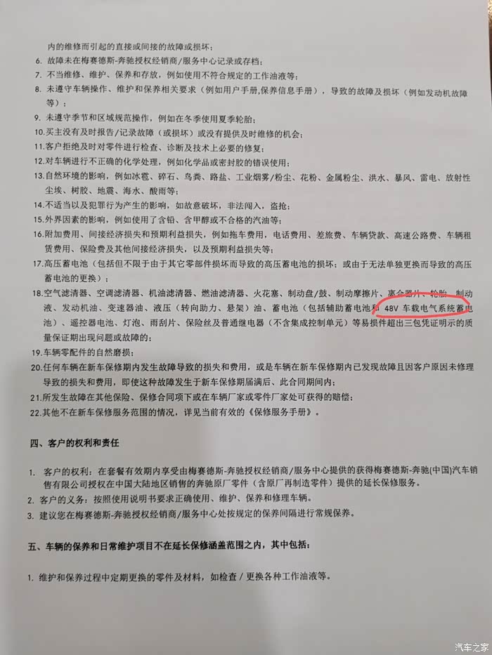 买了奔驰原厂延保的看看,延保不包含48v电池