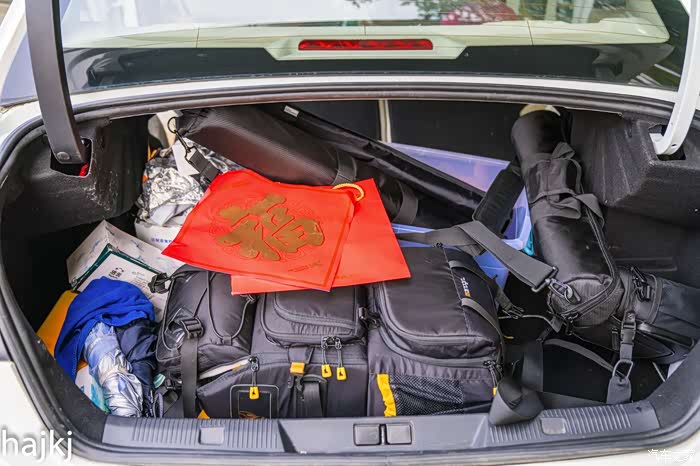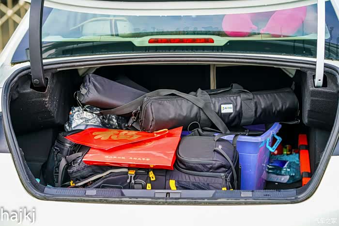 别看修长苗条的身材,后备箱可是很能装,一大堆的包包,还是显得不拥挤。