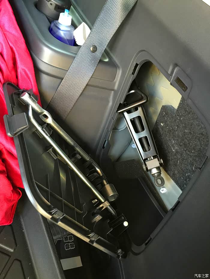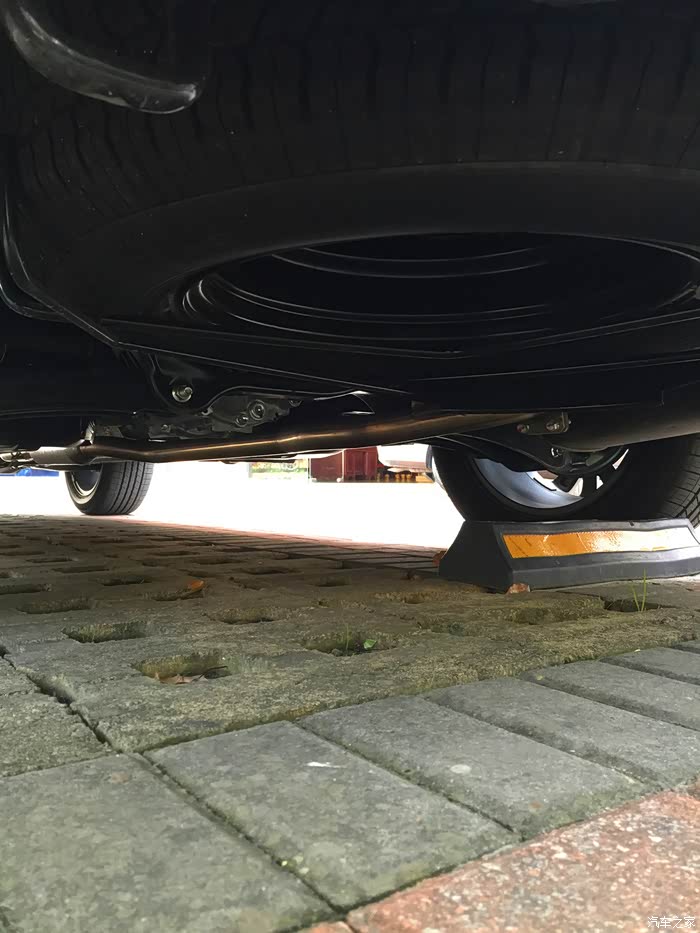 看完车前头,再蹲下看看车子后裙底呗,其实主要就是看看备胎。备胎不是全尺寸的,拿出来也远比我之前的小POLO复杂。赶明儿在坛子里面收套全尺寸的备胎,不然出去跑远门还是不踏实啊。
