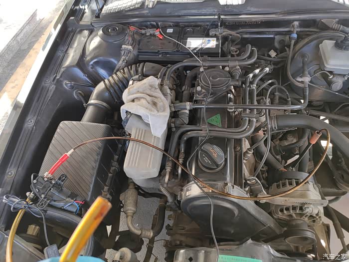 13.倒入新机油。和抽出来的量一样。快完事的时候慢点,多看几次油尺。加多了还得抽出来,麻烦。