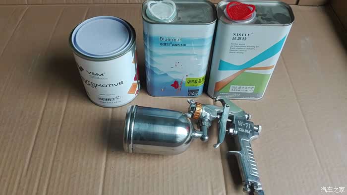 于是上某宝买喷枪、油漆(自己去汽车城调的)、砂纸、原子灰,再上百度找喷漆的视频自己学——真是辛酸的经历。