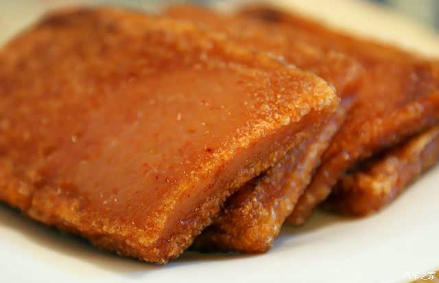 年糕是我国春节必备的节日食品,不过其风味南北各不相同。三亚的年糕是由糯米加红糖制成的棕褐色粘糕,有些黏糊,但味道香甜,本地称为红糖年糕;可蒸熟后即食,也可放置至其硬化后油煎,油煎后的红糖年糕更添了一份香脆。红糖年糕原先是春节时,由自家长辈手工制作,并给家人食用的春节风俗食品,平时并不常见。而今却变成平时常见,春节时家里几无人做。