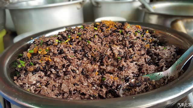 制作鸡屎藤粑仔,须先将新鲜的鸡屎藤叶和浸泡过的大米捣成粉状,然后将它们用水和匀,捏成约小指头大小的粑仔。在锅中烧开水后,下粑仔、姜丝、再加适量红糖,待鸡屎藤粑仔煮熟后即可出锅。 在三亚,鸡屎藤粑仔多为红糖姜丝的做法,只在早晨至下午时售卖。现在回看鸡屎藤这略显不雅的名字,已然成为许多游客眼中必尝的另类小吃。 价格:5元左右 黑豆饭