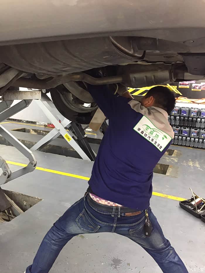 看来师傅很负责,还拿手给你顶着换变速箱油