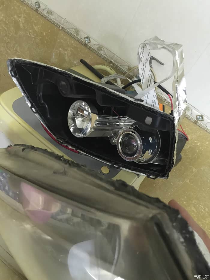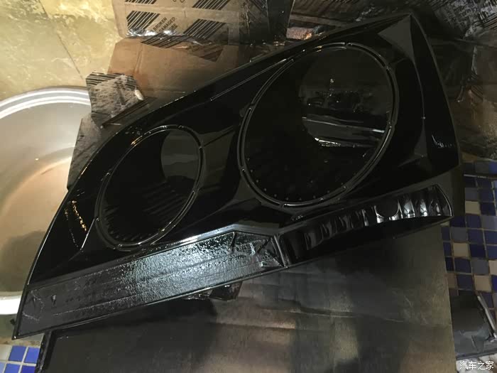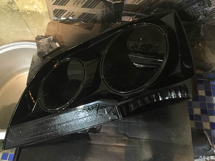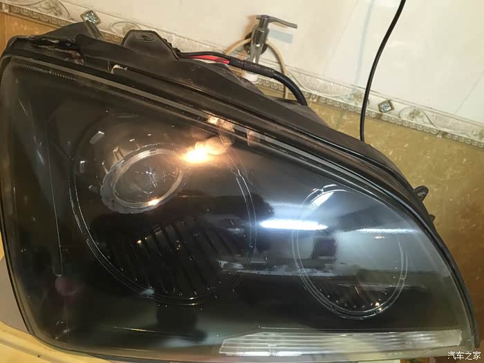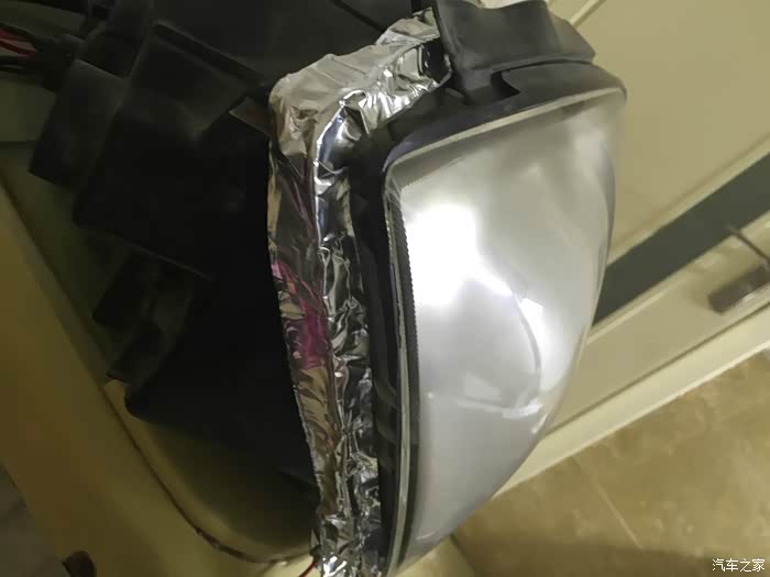 接下来开始操作,我是在家里卫生间操作的,先拆了一个回来,加热后很轻易就打开了大灯。从里面往外看,全是雾蒙蒙用320#砂纸使劲均匀的打磨5分钟,打磨到表面全部打掉一层皮就算是OK了。在用600号砂纸打细腻3-5分钟。接下来,把1000#砂纸泡水里,淋着水打磨3-5分钟。2000#砂纸也是泡水+淋水打磨,适当打磨三五分或者十分钟。我是看着电视打磨的,慢中出细活(过年没事磨洋工)~哈哈。打磨完用热风吹干,此时会发雾,别担心,喷上清漆就光亮如新了。反光层因为我不小心刮花了,所以我喷的黑,你们可以不学我,反光层尽量不要用手摸,清洁的话尽量轻,不然就也得学我喷黑了。。。我是改了透镜了,喷黑不影响。。接下来,打胶,密封。洗车50块钱,没洗车,对凑看一下哈~~顺便调一下大灯角度,我是不是调的太低了,我觉得是太低了,不过,没事,这个依据个人喜好。然后再次强调一下,文明使用远近光。至此,完毕,祝大家新年快乐~!欢迎加群:中国旗胜车友会 QQ群号138133017。