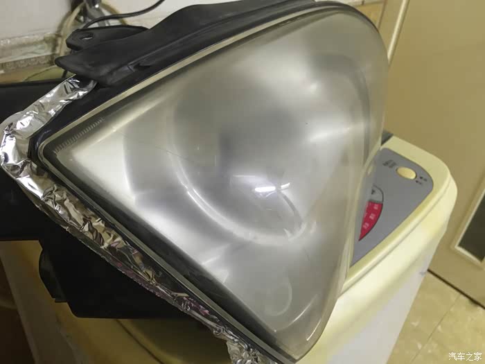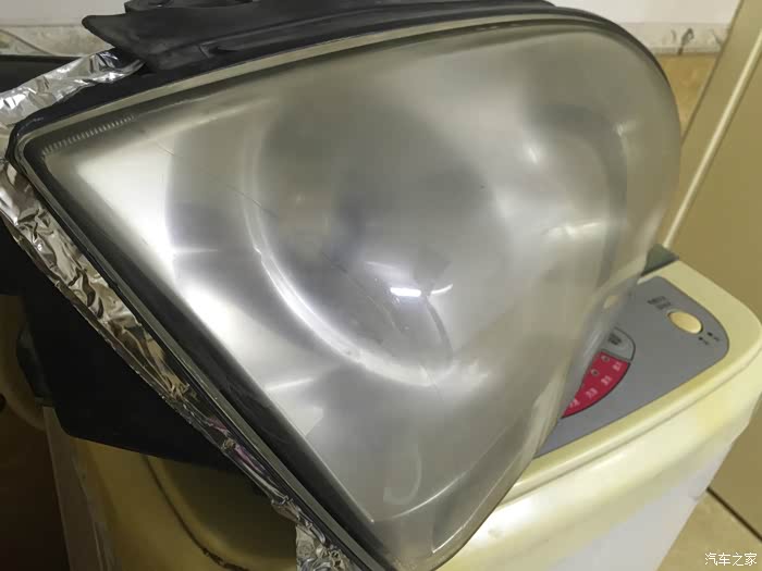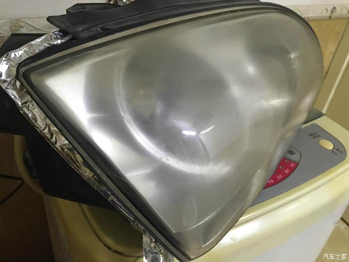 我的车是11年的,近半年来发现大灯起雾老化严重, 经过自己观察问题发现问题有几点:1,灯表面出现了起皮、龟裂、发黄以及由于大灯插头没有接好进灰并且在大灯里 侧起了油雾(这点是打开后发现的,但是没打开之前经过抛光能看出来里面不干净)。大灯刚买车就改了氙气+透镜。在此说一下,改氙气大灯可以,一定要加透镜,不然真是害人害己,文明使用远近光。正是因为开始改装人员的不经心埋下了祸根,应该是因为烤箱温度过高,那么,改灯的朋友就要注意了,自己改也不是问题,原车的密封胶是100度左右就可以软化打开的,改装不难,胆大心细即可。接下来说说过程吧,首先准备材料:一、开灯用加热设备我用的电热带;二、温度计我用的激光测温仪;三、砂纸320#2张、600#2张、水沙1000#2张、水沙2000号2张,清漆一瓶(最好有光固化UV漆,外面卖的大灯修复液就是光固化UV而已,我没有渠道,有渠道的兄弟可以***广告便宜点惠及坛友),还需要一盘蛇胶可以用玻璃胶或者是热熔耐候胶,镜头布:这个要特别讲一下,等会不做特别介绍,打开灯后一定要用柔软的布+适合亚克力材料的清洁剂,不然就会出现划痕,正常看不到但是大灯一开,划痕很明显;四:其他材料、一字十字螺丝刀各一,钳子一把等。先看一下原来大灯的惨样