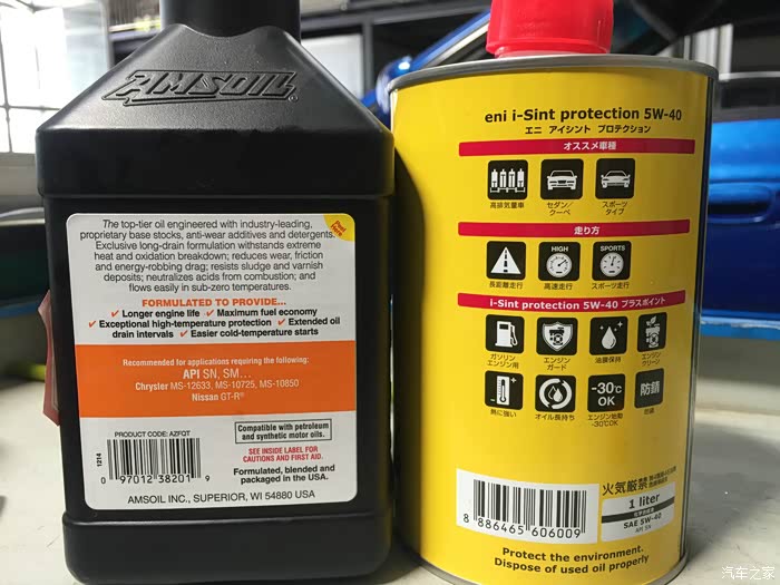 左边黄色包装的机油是这次保养的主角,右边的是上次过磨合期后换的机油行驶了7500公里。下面分别介绍下