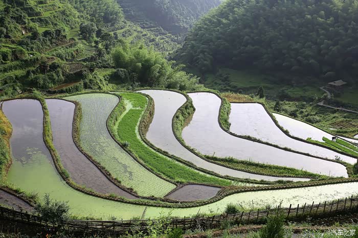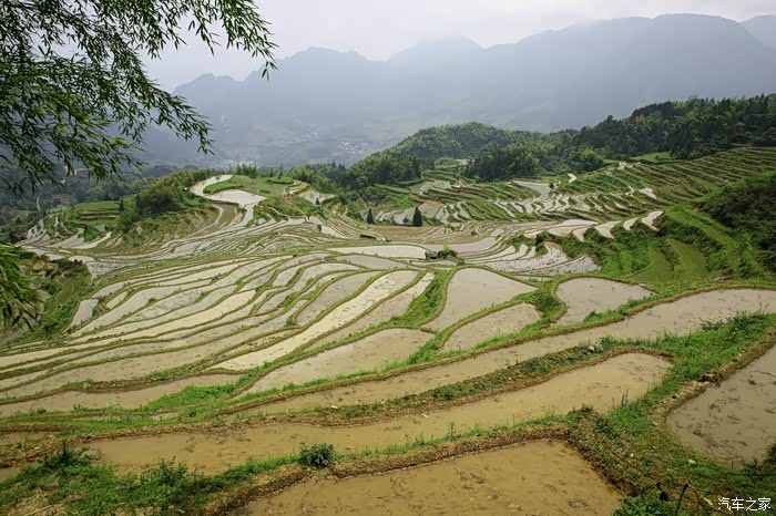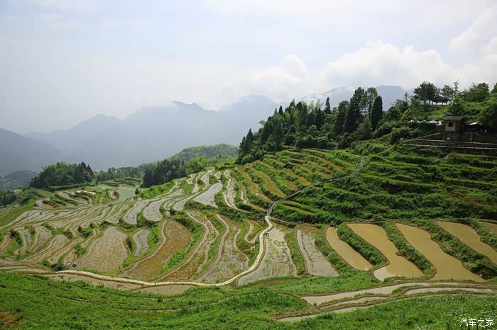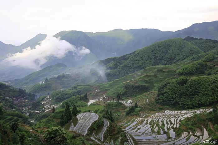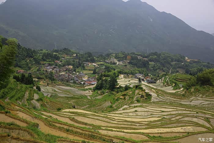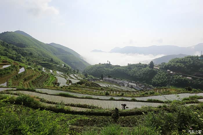 从大漈下山,辗转2个多小时,又是将近一半的盘山公路,于下午3点半到达云和梯田景点之一,七星墩所在的梅竹村。云和梯田是华东地区规模最大的梯田,整个景区面积巨大,主要景点分为七星墩、日出云海和白银谷三部分。最高处的七星墩(海拔约1100米)则有云和梯田最壮观开阔的景象,天气晴好的时候非常适合在这里守候日出;日出云海的梯田因为处于丘陵地带,呈半包围的合围地形,在夏季连续降雨之后易聚集大量的水汽高度凝结形成云雾或云海,景象非常壮观;白银谷以前是银矿,除了梯田还有些当年采矿留下的遗迹,白银谷由一亿五千万年前侏罗纪时期火山爆发后经第四纪冰川运动而形成,是江南典型的火山峡谷,也是一个天然的大氧吧。白银谷游步道全长2700多米,幽谷中有银官桥、望鹤台、摩崖石刻、蛤蟆问天、乌涧飞瀑等景点。