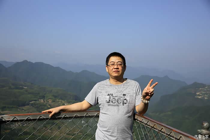 告别了田园山庄的老夫妻俩,将车驶出梅竹村后没有立即前往日出云海景点,而是向左后一拐进入了通往白鹤尖方向的山路。走了不到2公里,铺装路面结束。呈现在我们面前的是一条崎岖不平的泥石山路,毫不犹豫地将车转上山路,向着白鹤尖进发。这条山路是我有史以来从未走过的烂路,路面泥石混杂,高低起伏。开在上面就犹如一条小船在大海的波涛里上下起伏颠簸。从车窗往左面看,不到一米以外就是万丈深渊,令人头晕目眩。但斯巴鲁的四驱性能真的不是盖的,载着3个人轻轻松松地碾过一个又一个坎坷,一直把我们送到山顶的4号风机旁。