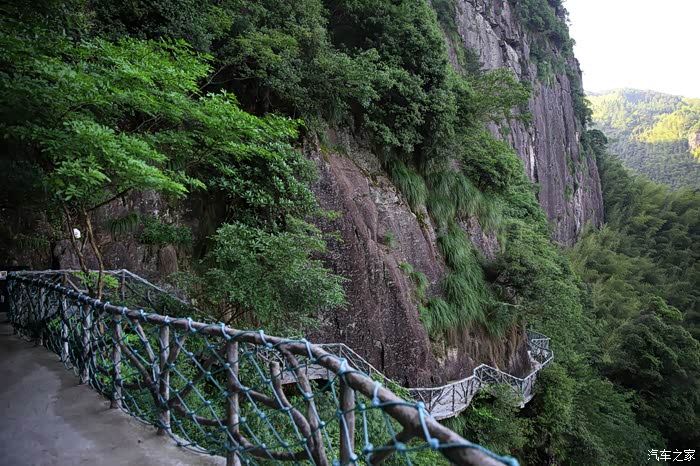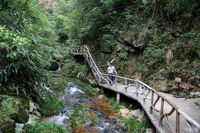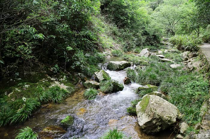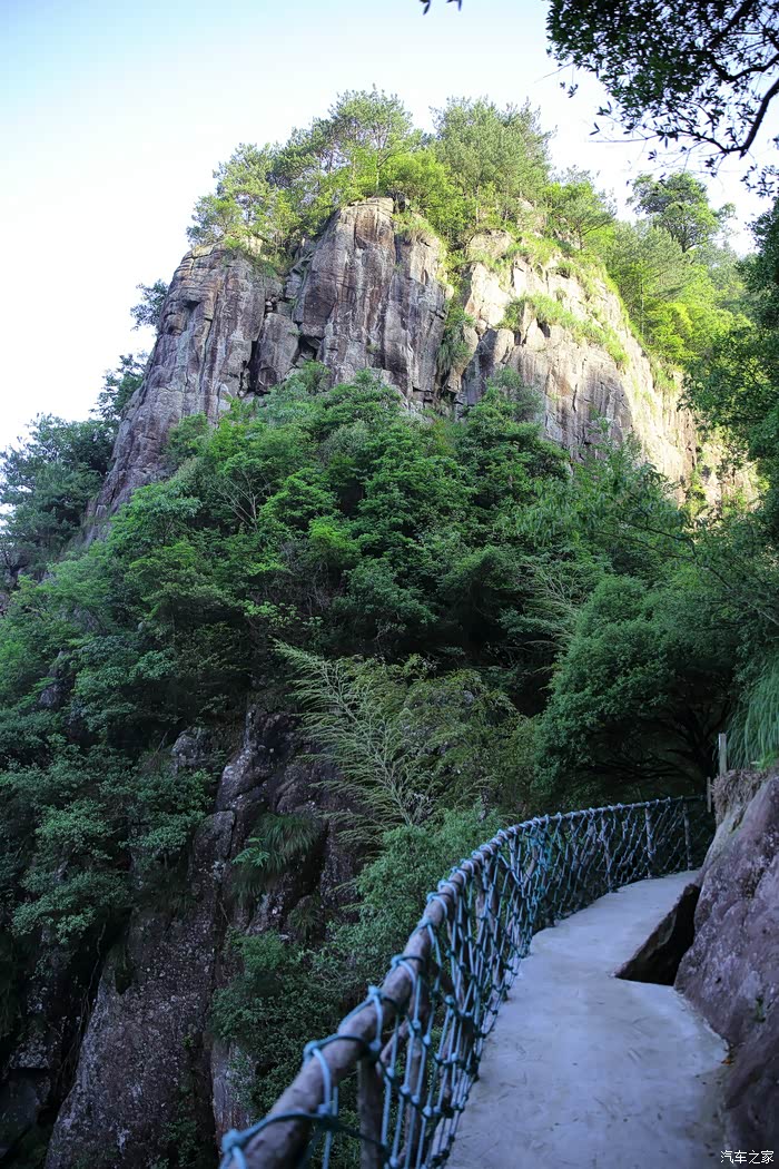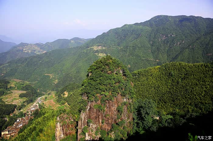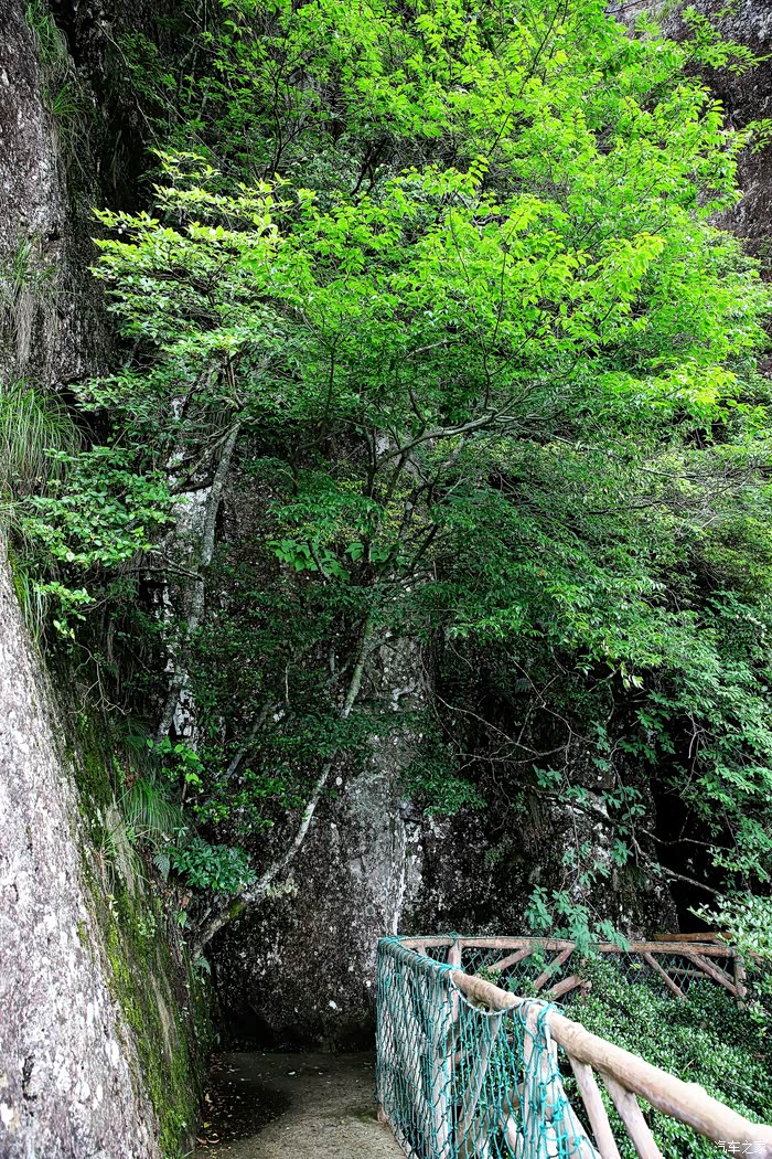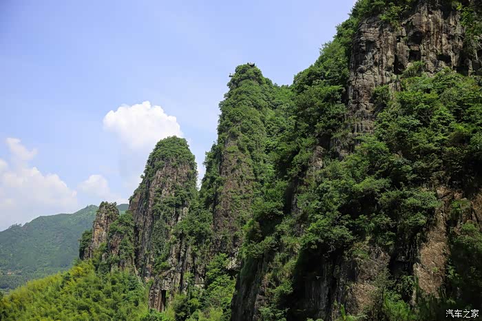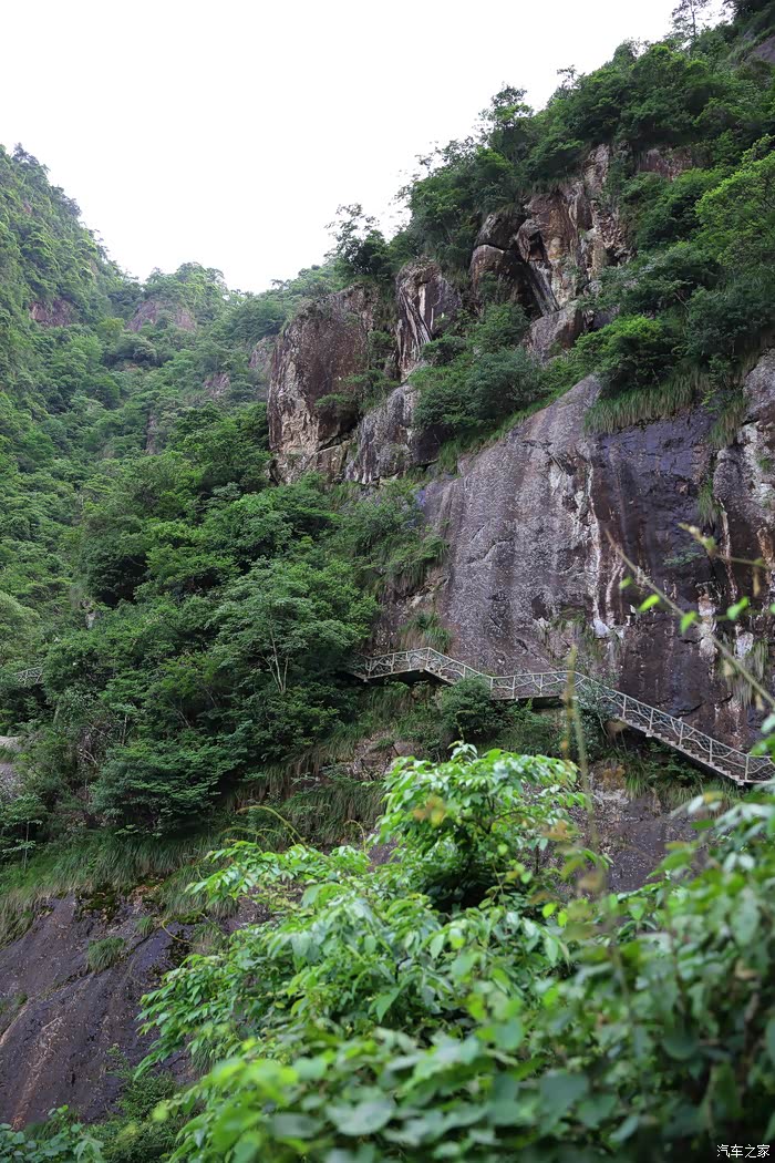 清晨起了个大早,六点准时接上朋友,随即转上S48沪宜高速,直奔浙江而去。一路上淅淅沥沥的小雨随着汽车进入浙江地界慢慢停歇,天也逐渐开朗了起来。越往南走地势越来越高,青翠的绿色也越来越多地映入眼帘。久居城市习惯了灰色森林的我们看见这满眼的郁郁葱葱也开始兴奋起来。快乐的旅程是短暂的,6个多小时的车程转眼已到丽水市遂昌县境内。下了高速沿着弯弯曲曲的盘山公路蜿蜒半个来钟头终于到达今天的目的地:石笋头村。预先订好的南尖岩乡村野味农家乐就在公路旁边,离南尖岩景区大门只有数步之遥。老板是个帅哥,也非常热情,将我们安顿好后告知,附近一带其实有两个景区:神龙谷和南尖岩。他建议我们下午先去10公里左右开外的神龙谷游览,明天一早再去南尖岩,要是运气好的话可以看到南尖岩被云雾笼罩时的仙境般的美景。匆匆吃了个午餐,稍微休息片刻后,采纳帅哥的建议,驱车先去神龙谷。