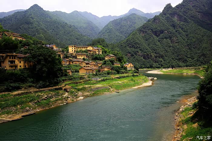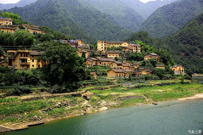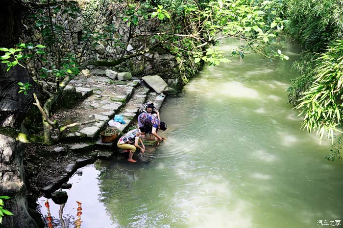 走出南尖岩,已临近午饭时间。向农家乐老板道声告别后,径直驱车前往40公里开外的焦滩村。头天晚上在村头散步时,遇到一拨来自上海的游客,就向我们介绍并极力推荐了焦滩鱼头。既然已经到了这里,岂能错过当地美食?焦滩村毗邻乌溪江,风景优美,山清水秀。乌溪江里鱼类丰富,因此在焦滩村形成“焦滩鱼头一条街”,很多来自全国各地的游客慕名而来,品尝风味独特的乌溪江鱼头炖豆腐。沿着乌溪江逆流而上,左侧是山,右边是水。一路上是风景美不胜收,真正应验了“风景在路上”那句至理名言。随着乌溪江转过一个大弯,来到了“焦滩鱼头一条街”,将车停在“焦滩姐妹鱼头馆”门口步入店堂,已经有不少食客坐着埋头大啖了。这里的鱼头做法很有特色,鱼头下油锅煎至外焦里嫩后,将紫苏叶放入锅内一起熬制去除鱼腥,再配以乌溪江水制作的原生态豆腐和土生土长的黄瓜,不一会便汤白味浓,香气四溢,令人食指大动。