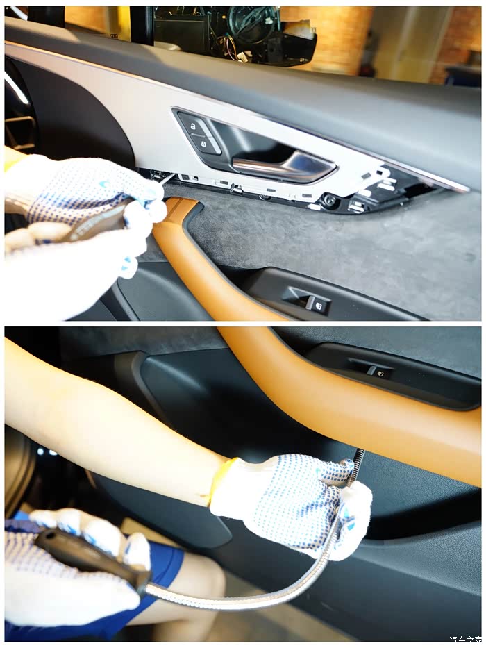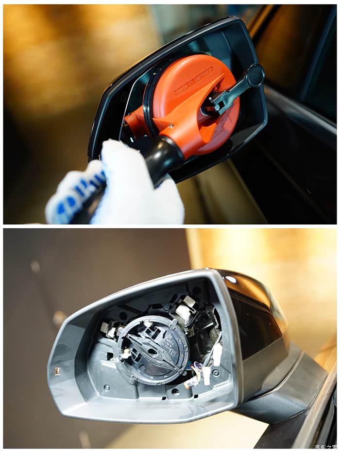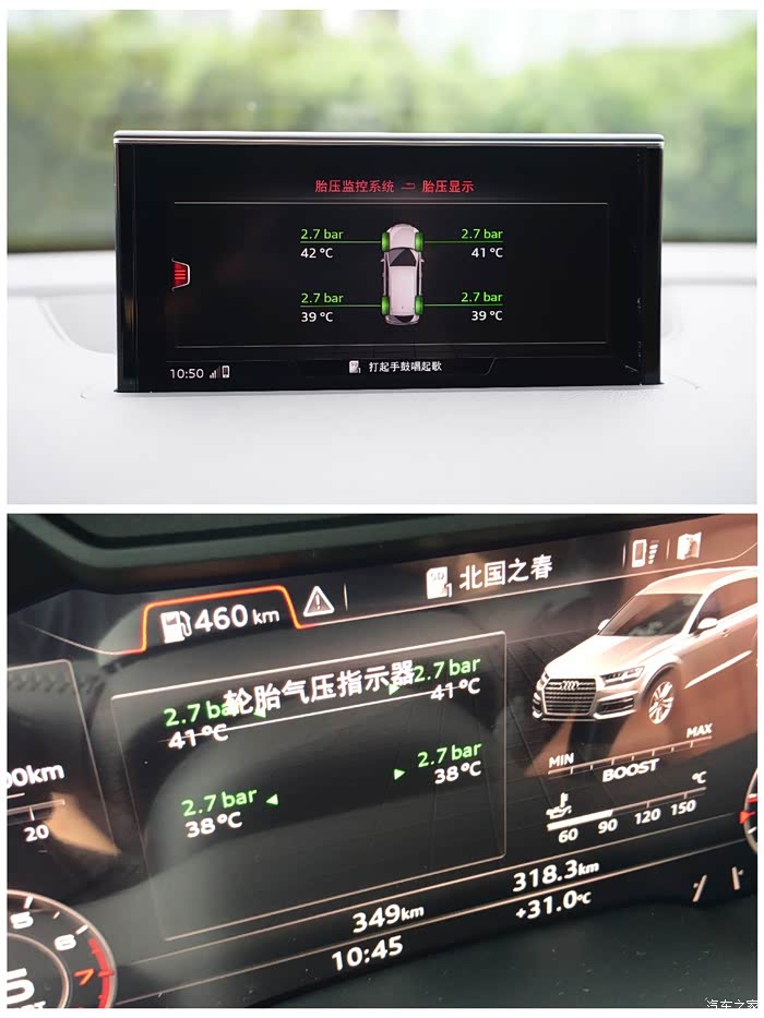 不累赘介绍了,提车过程很愉快,检查、手续、交车,没什么好过多的介绍。唯一要吐槽的就是尊贵型居然是没有奥迪侧向辅助的。详细了解了Sline运动型是可以选装PCZ视觉包来获得想要的功能,但是尊贵型PCZ视觉包中除了奥迪侧向辅助以外的功能已全部标配,所以尊贵型居然没有这个配置了,略显遗憾。没有办法,那只能和原本就有计划要升级的实时胎压一起自己来做升级了。