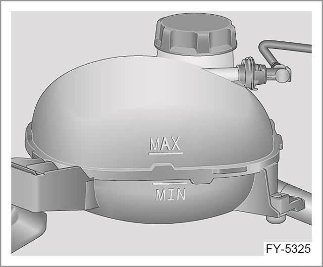 3.将适量的冷却液加注在冷却液膨胀罐内,达到冷却液膨胀罐MAX和MIN刻度之间的位置。