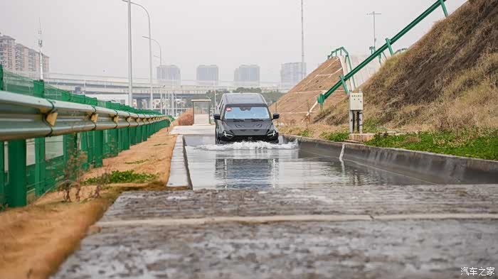 其次,大家还得搞清楚路上积水的深度。最好的办法是目测,通过观察其他车辆来判断水有多深。当然,必要时需要下车去探测,利用雨伞、树枝等工具,甚至亲自走进水里用脚去测量,此时一定要注意安全,小心路边的沟渠和井盖。确认涉水深度后,要将车子驾驶模式调至涉水模式(WADE), 并把车辆悬架升高至第 4 档。 同时,电量保持设置应大于当前车辆电量,将车窗降下一定高度并打开天窗。