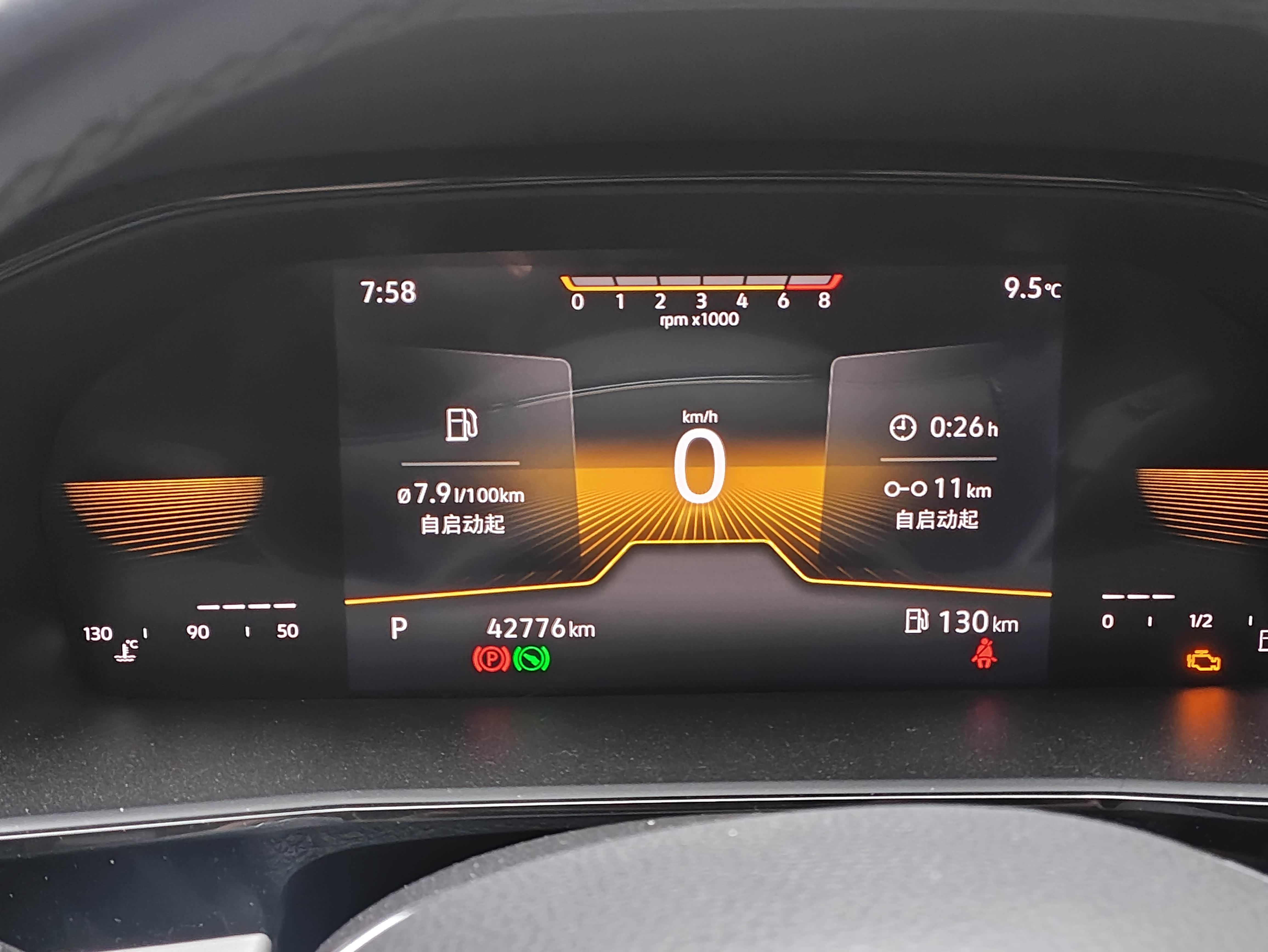 市区早晚高峰:7.8-8.5L/百公里(实测最堵时到过9.3L)