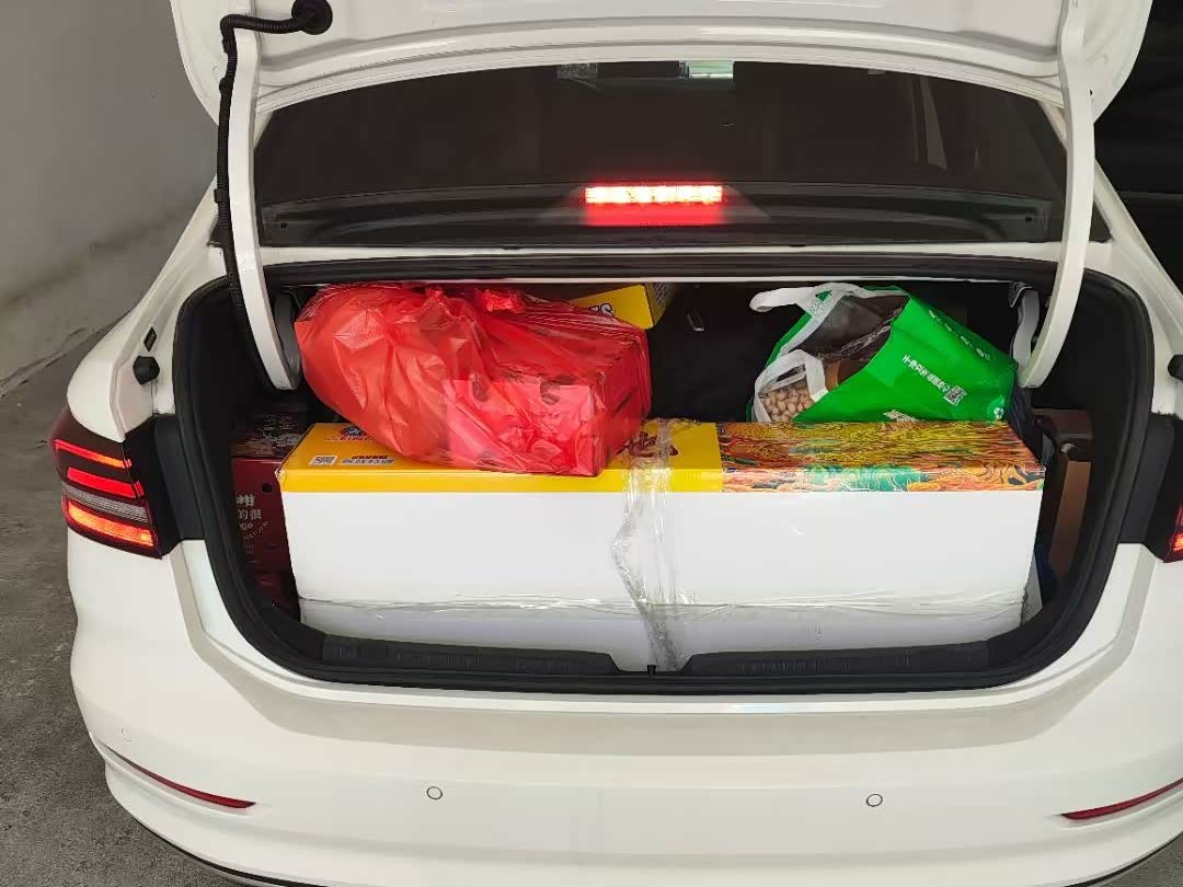 后备箱:春节装过3个24寸行李箱加一些年货,烟花啥的,塞得满满的。看着不大,实际里面容积非常能装。