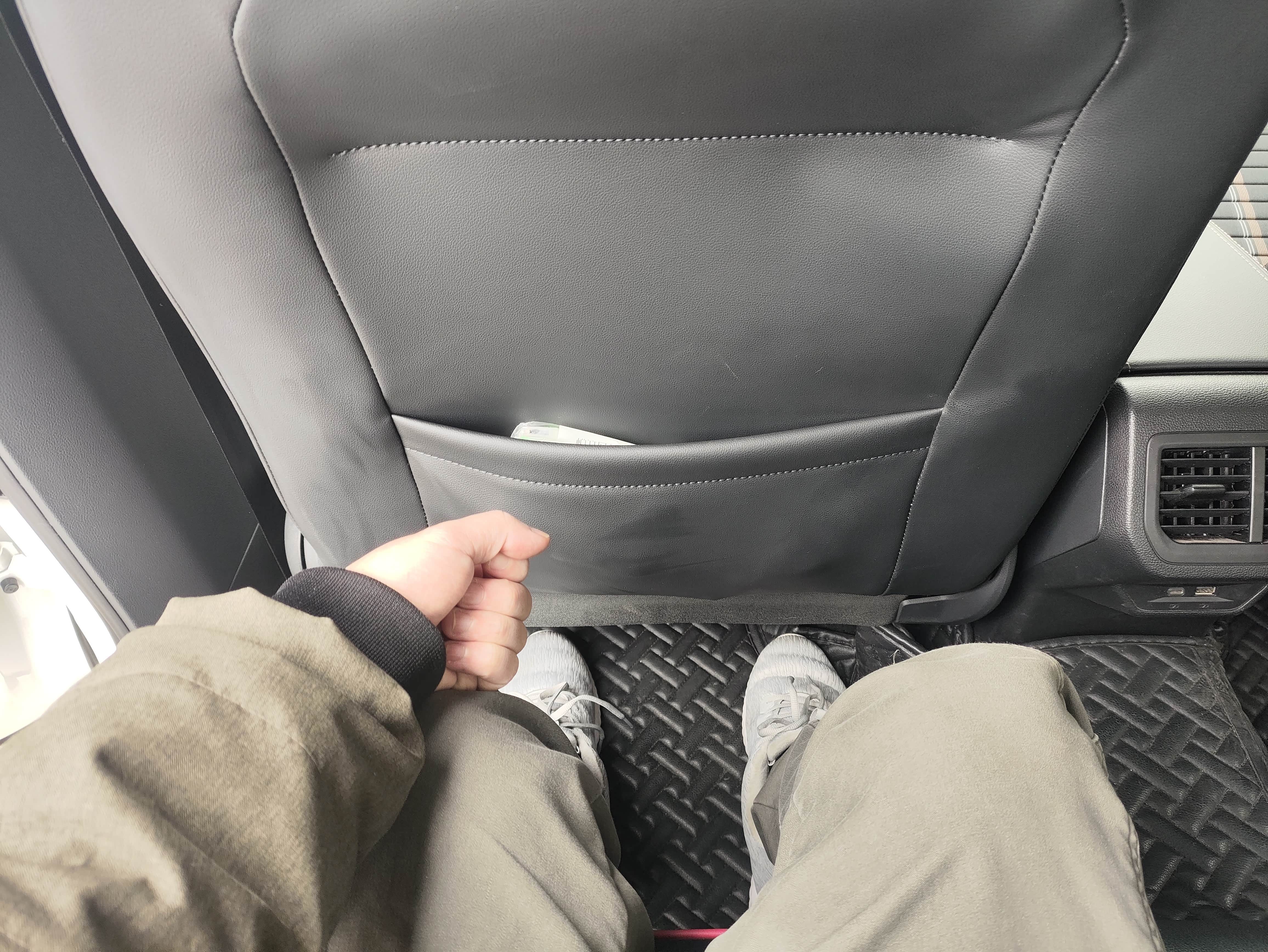 后排腿部:身高175cm调整好驾驶位,后排还有两拳的距离,平时坐2个成年人很宽松,三个人就中间的稍微脚部空间不太够。