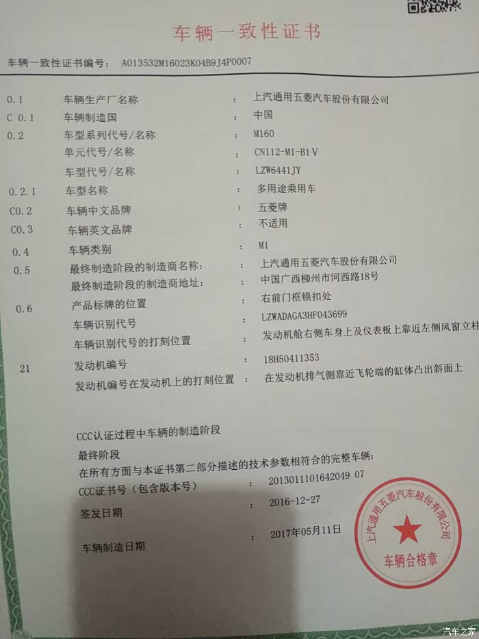 合格证吧这是。早都拍好照了,总在手机上放着,一直没空上传。