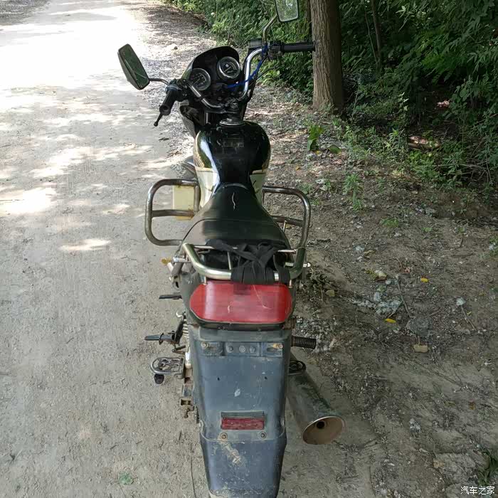 ,车子是循环挡的,0-1-2-3-4-5感觉还可以,表哥家的是国际挡(不知道叫法对不对)骑着反而有点不适应,期间自己也摔过两次车,第一次是刚学会骑车的第二天带着朋友出去玩,走到那种很深的拖拉机轮子印子的土路,一不小心熄火了人滚到路边沟里面,幸好人都没有事。第二次是去亲戚家回来的路上,速度太快,40的速度过90度的弯刹车的时候(只踩了后刹)轮子摆来摆去掉进一个干池塘里面,人没事,车子打不了火后视镜坏了一个,后面用脚踩着火的。骑行有风险,且行且注意!下面上图!