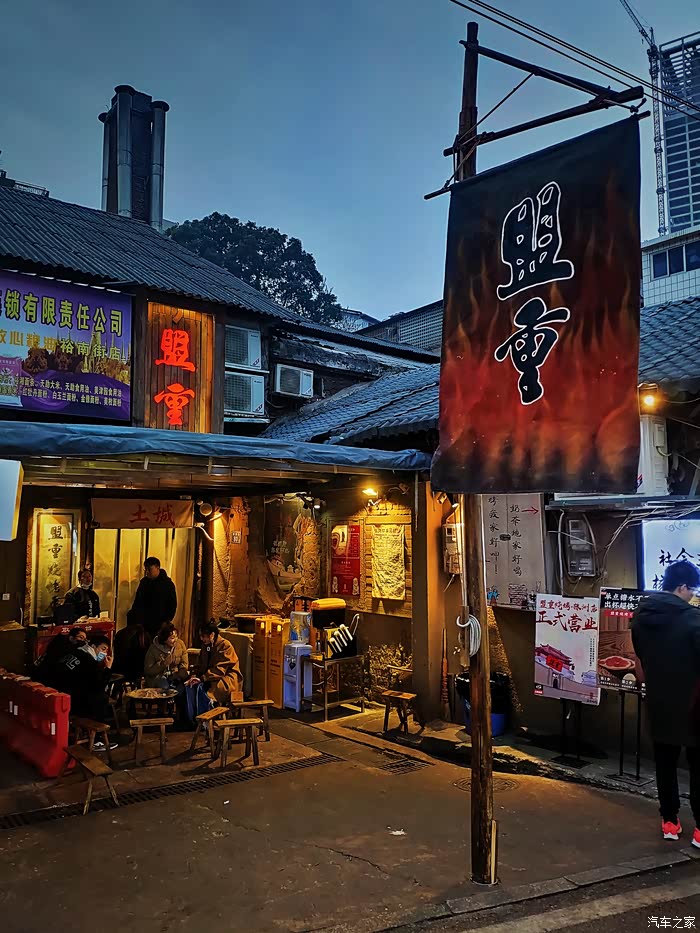 夜宵选了盟重烧烤,据说很多明星来长沙都会吃这家店。串的种类不多,而且都是按把来计量的,一把十几根的样子。点了烈火牛肉,盟重牛油和蒜爆鸡和一碗葱油拌粉,味道不错,量其实不大,每串上没多少东西。店铺设计成武林江湖的样子,因为是冬天,入口处还放了个烤火的火炉。客单价和壹盏灯差不多,七八十块吧。