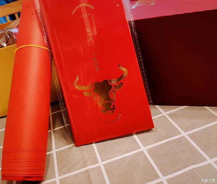 这个礼包是沃世界公众号的福利,送给了10000名幸运的车主,礼包是新年主题,所以都是喜气洋洋的红色。