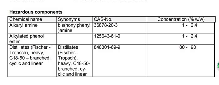 完全看的出来:壳牌的GTL代码是848301-69-9:Distillates (Fischer -Tropsch), heavy, C18-50 – branched,cyclic and linear。可以查下含GTL的产品,例如超凡020,PUP020;至于三类就是:Interchangeable low viscosity baseXSS oil