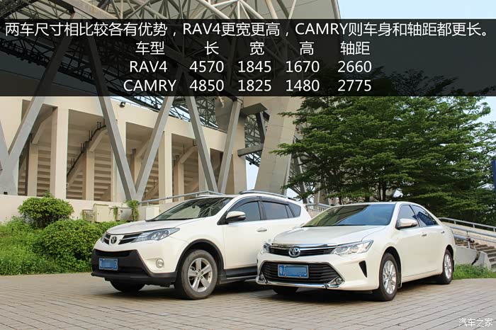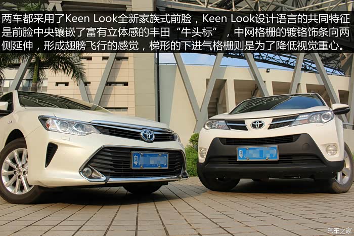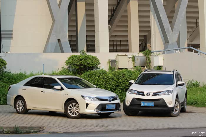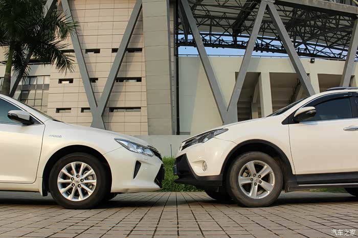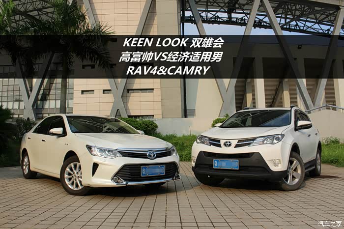 SUV对飚三厢轿车,估计各位车友乍眼看觉得有点跨界,本是风马牛不相及的两台车,我怎么会拿来作对比呢?其实两车之间还是有不少共通之处:1、相同的品牌:丰田;2、相同的排量:2.5L;3、相同的前脸设计语言:KEEN LOOK;4、最重要的是两车拥有非常接近的成交价格:24-25万实际落地价。文中两车均为家中车辆,RAV4提于2013年11月,CAMRY提于2015年6月,本来去年开始一直就想写这篇对比***了,一直拖到最近才有时间完成,希望本文能为有意购买丰田品牌25万区间车型的车友解答到一些疑问。前面讲了几个两车相同之处,下面正式去片分析RAV4与CAMRY孰胜孰负!