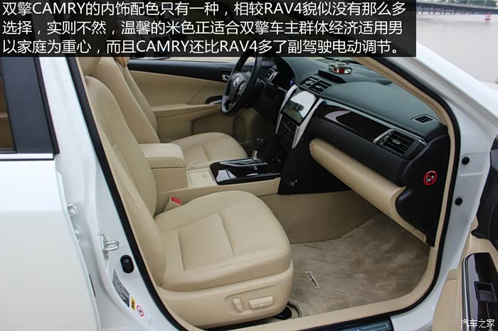 RAV4拥有靓丽的外表、时尚的内饰、配合高效的动力单元和适时四驱系统使得车主拥有极大的便利性,不论出入大都市的CBD还是乡村小道都毫无压力,堪称生活中的多面手;CAMRY外形和内饰都中规中矩,但却拥有一颗不甘平庸的心,以双擎动力实现低油耗高动力。
