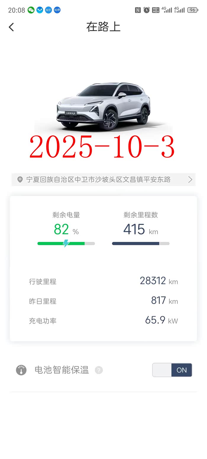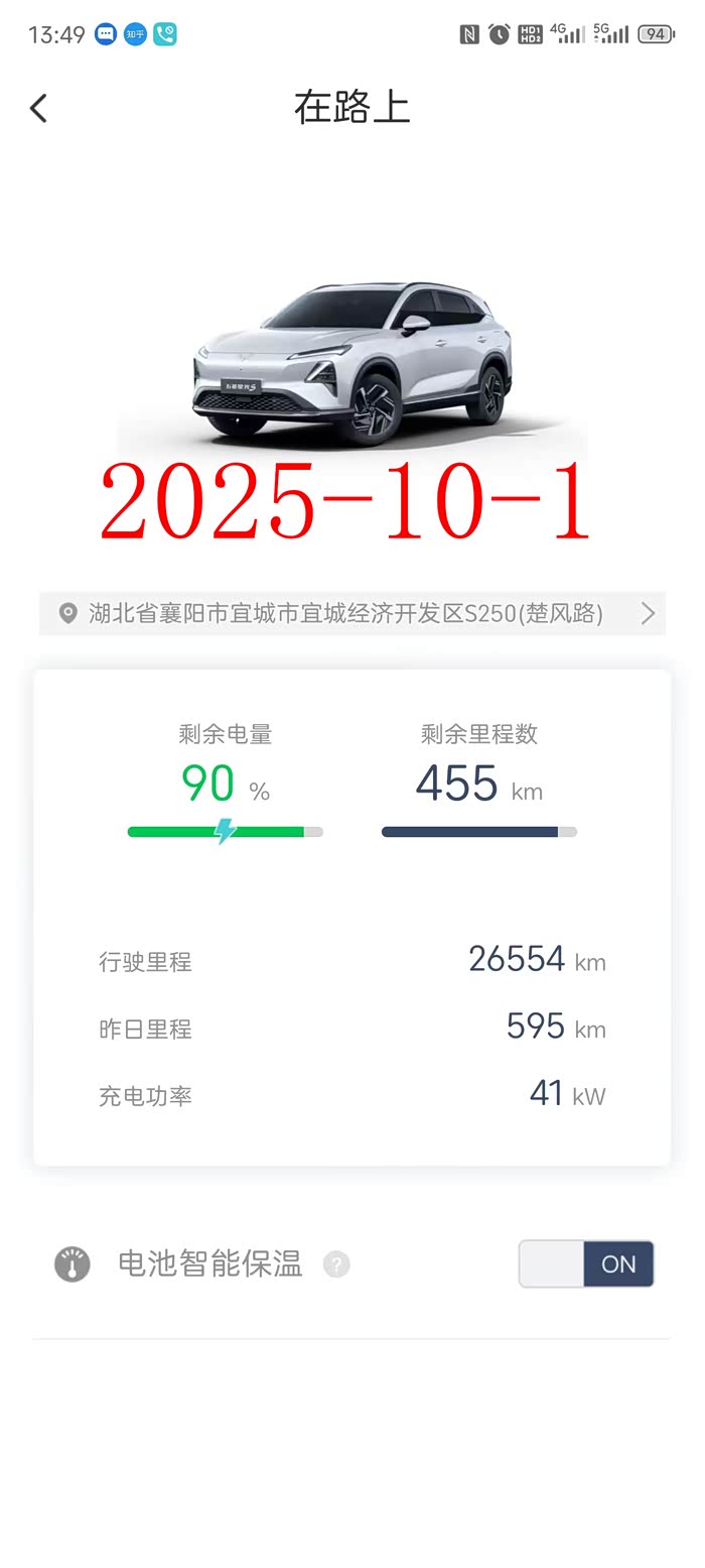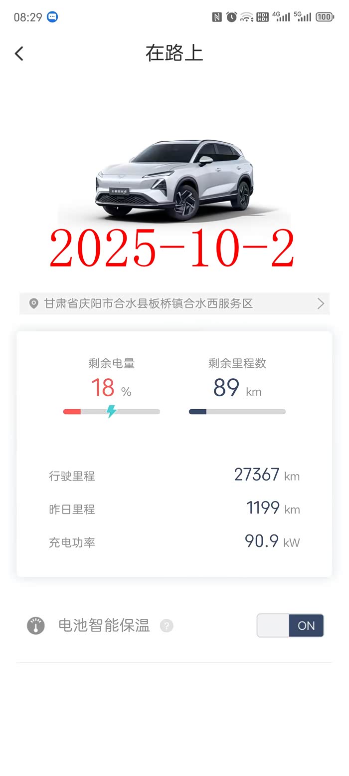 我在广东佛山的,属于去那里都远的那种,以前虽然喜欢旅游,但每次长途旅游的油费长途的费用都比较高,特别是以前没有辅助驾驶ACC,开一天长途车是非常累的,自从买了星光S的2024款 510km 旗舰型版后,就解决了这个问题,纯电花费非常低,在高速上面直接ACC辅助驾驶基本上是不累的,所以就决定今次十一开始一次广东佛山到内蒙阿拉善2400公里之程,开始计划一天能开1500公里的,但因为车上有一家人,还是只轻松开1200公里一天。
