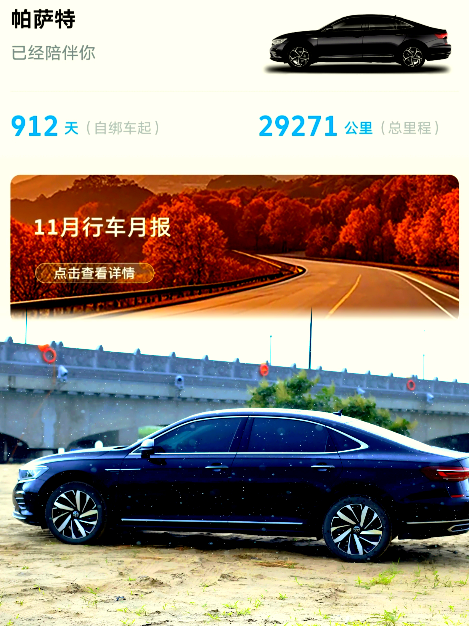 如果再给我一次选择的机会,我依然会选择帕萨特。这不仅关乎一辆车,更因为在九百多个日夜的风雨兼程里,我们之间早已形成了无需言说的默契。它见过我最匆忙的清晨,也陪我驶过最安静的深夜,每一公里都沉淀成生活的厚度。未来的路还长,我仍期待与这位沉稳的伙伴并肩,在熟悉而安稳的节奏里,驶向下一段属于我们的里程。