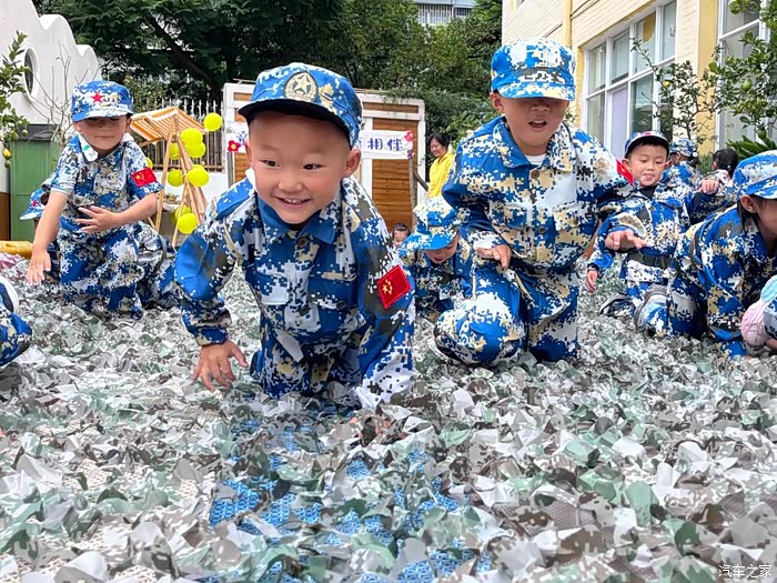 抵达幼儿园时,儿子迫不及待地解开安全带,背上小书包就要往外冲。"等等,"我叫住他,帮他正了正歪掉的迷彩帽,"记住要听老师的话,做个勇敢的小战士。"他郑重地点点头,然后像只快乐的小鸟般飞向等待已久的老师和同学们。一进校门,他就迅速融入了一群同样穿着迷彩服的小朋友中。我看着他利落地把书包放进教室储物柜,动作熟练得像个老兵,然后立刻加入到操场上正在进行的"军事训练"中。