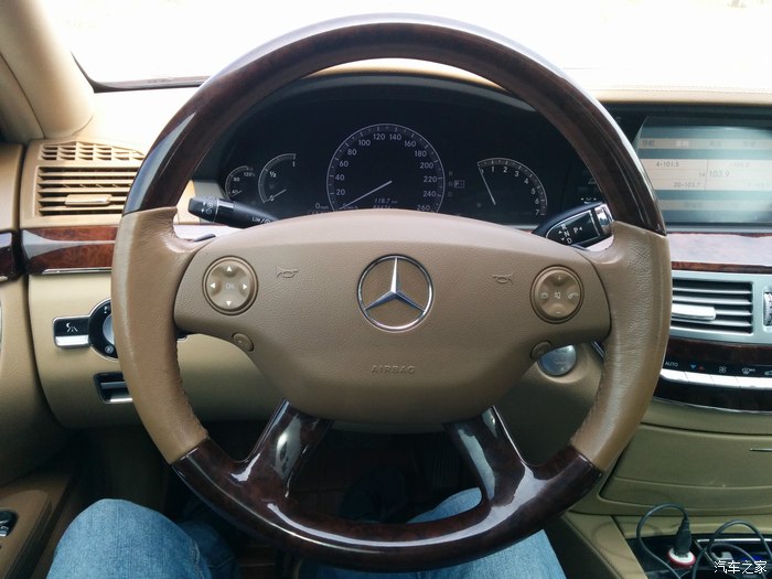 老W221,就是处处体现整体,处处体现呼应,处处体现协调。方向盘下辐线和中控桃木下辐线是一致的!