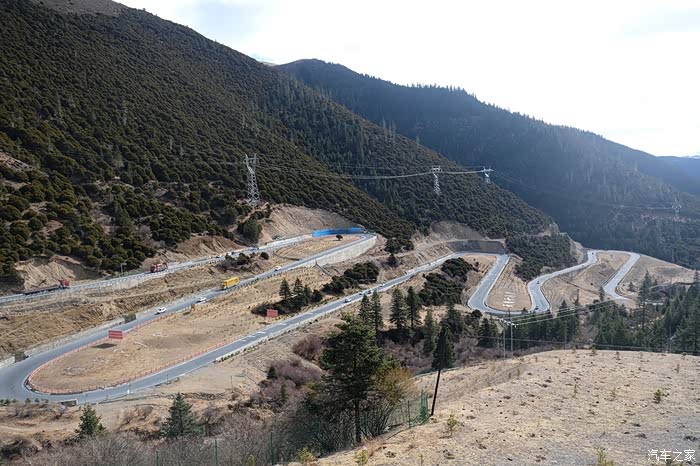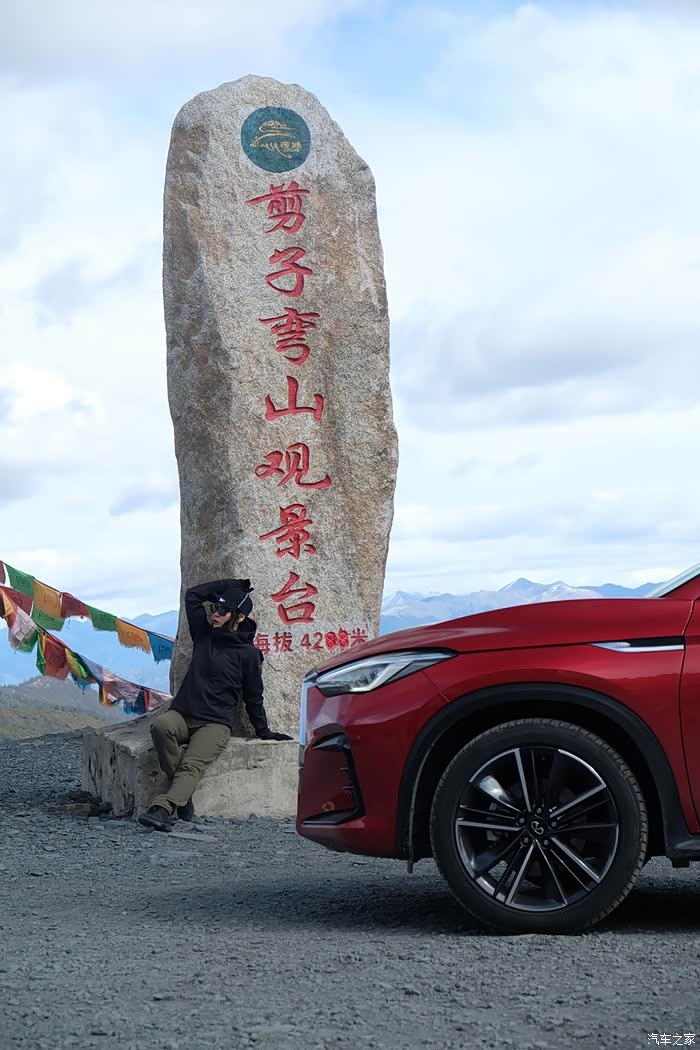 这次一路上和QX55合影不少。这个是在剪子弯观景台和QX55的合照,从剪子弯山观景台望下去,可以看到上来的天路18弯。这段路修建在海拔4500多米的地方,所以被称为天路。