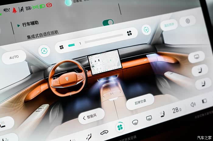 S7后排还有一个小的屏幕,别看屏幕小,它支持调整空调、天幕遮阳帘和副驾座椅的前后位置,对于后排乘客来说,用起来很方便