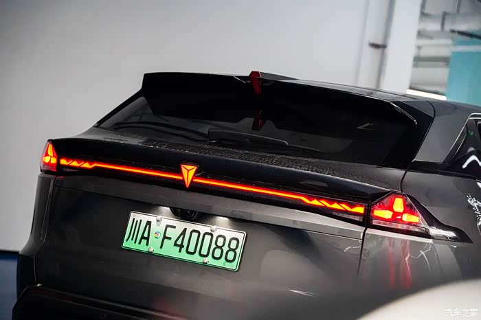 尾部采用了时下最流行的贯穿式尾灯,中间的车标logo也是可以点亮的,有点意思~