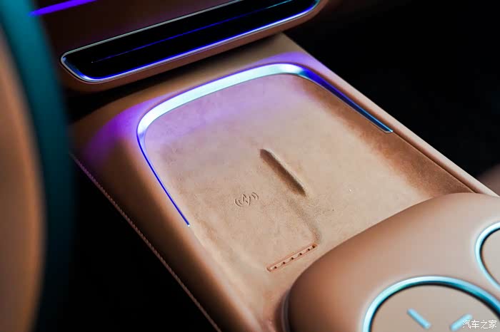 中控屏的下方设计了无线充电功能,再下方则是一块镂空的储物区域,这就是采用电子档的好处