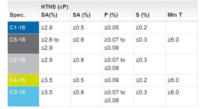 下面开始说明,ps:括号外是标准,括号内是对应的SAE粘度等级