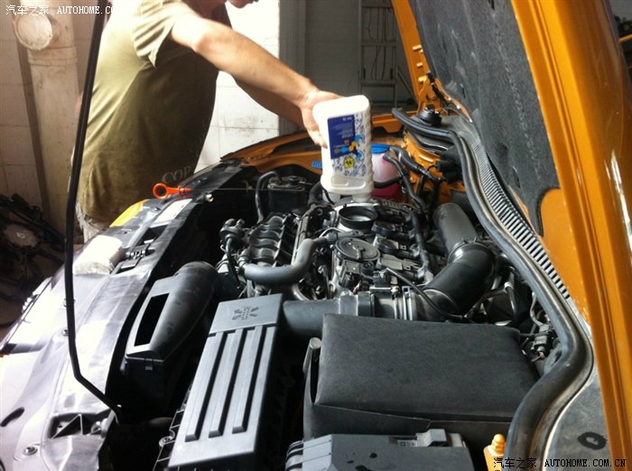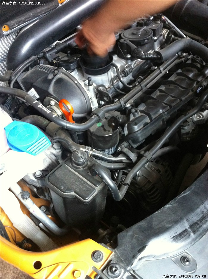 除了吹这里,还通过机油加注口、机油尺处彻底吹干净残油。然后加了整整5L机油进去,油尺未到上限。4S换油,残油不弄干净,一般就只能加4L多一点。