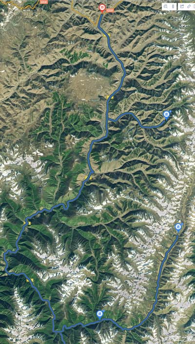 离别泉华滩,开始了上图两个途经点之间,凯立德、百度地图都没有标注的恶劣路段,奔向贡嘎主峰。
