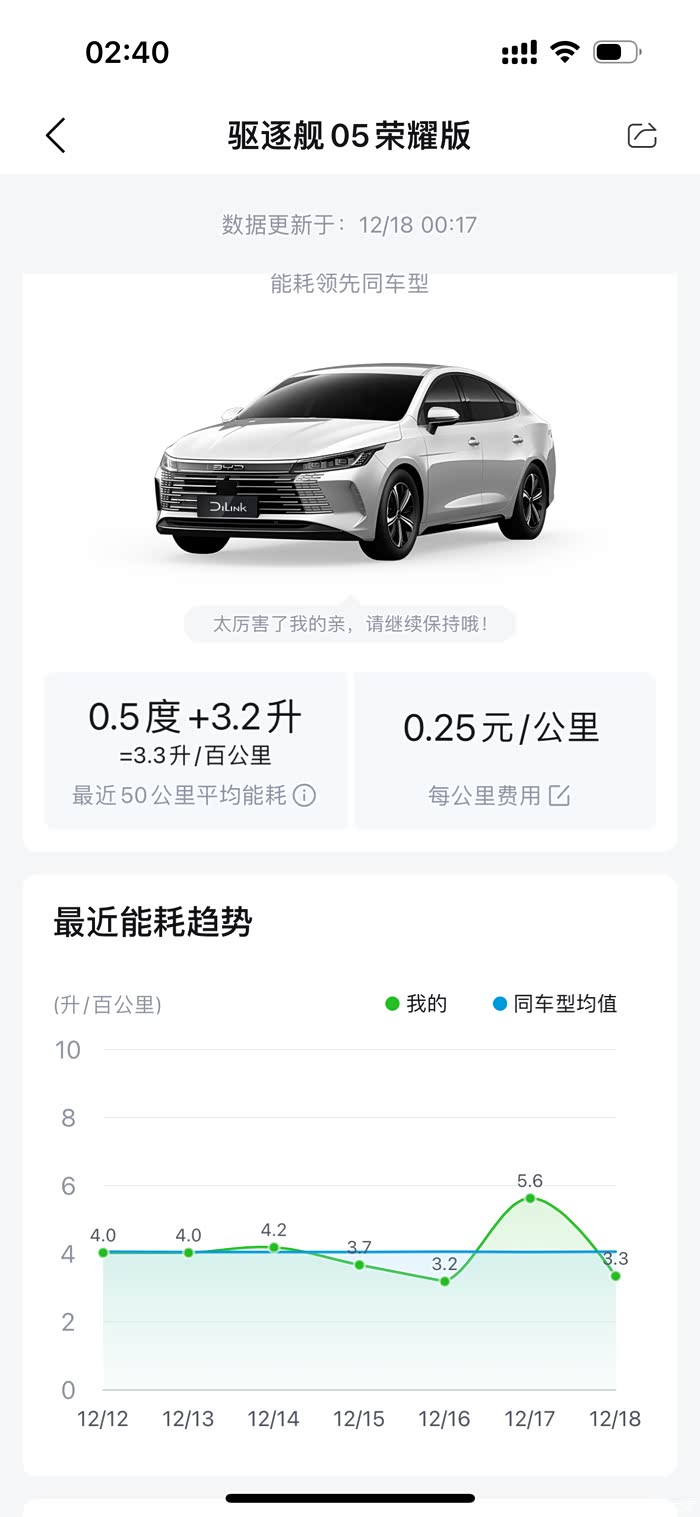 像咱这款车的话,是属于正常的一个油耗,主要的是像咱这个油耗的话,受影响比较大的是起伏的路段,还有就是天气,尤其天气冷的时候,电池介入的就少一些了,所以说油耗会比平时有所增加,但是这个油耗也比,省油的燃油车还要省油。